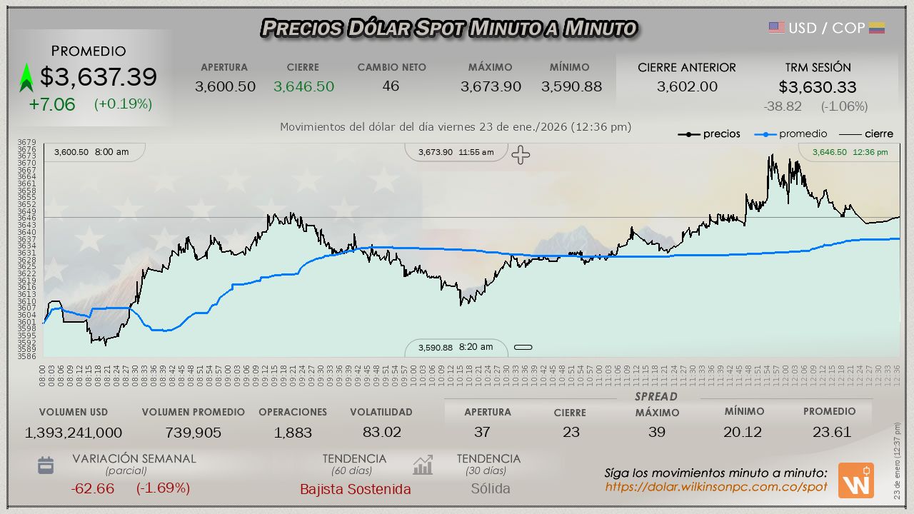 | $ 1 USD | $ 3,669.15 COP |
