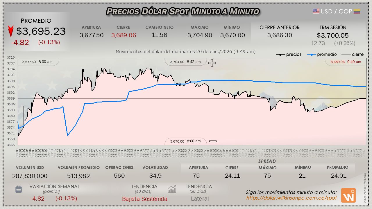 Nota: Estas velas reflejan el mercado internacional (Forex). Úselas para analizar tendencias, teniendo en cuenta que el precio puede variar ligeramente respecto al mercado oficial SPOT de Colombia.