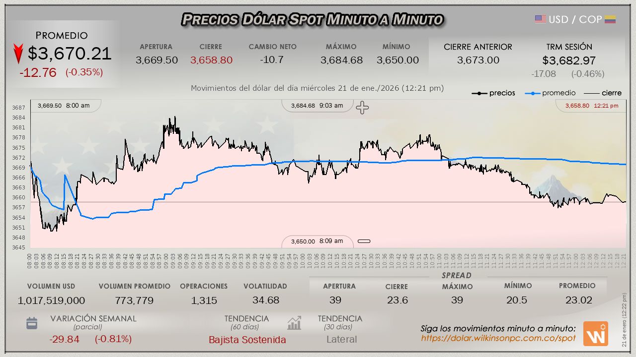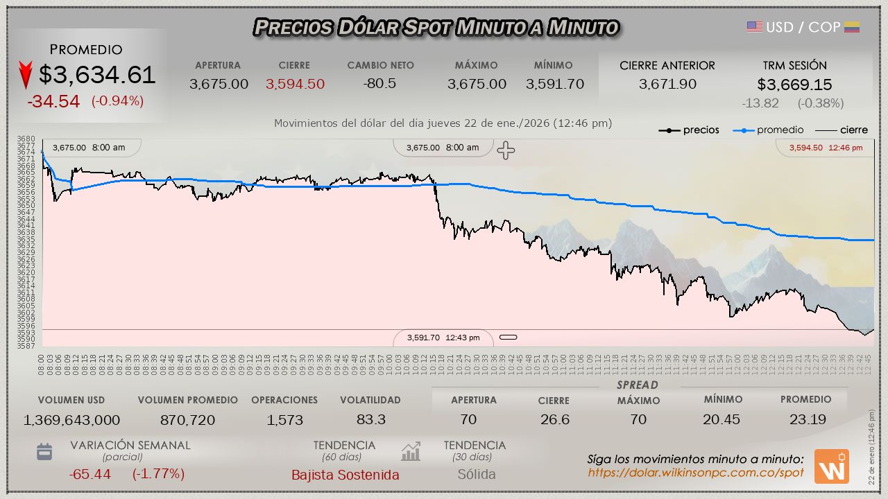 Estas velas reflejan el mercado internacional (Forex). Úselas para analizar tendencias, teniendo en cuenta que el precio puede variar ligeramente respecto al mercado oficial SPOT de Colombia.