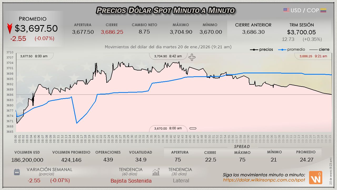 Nota: Estas velas reflejan el mercado internacional (Forex). Úselas para analizar tendencias, teniendo en cuenta que el precio puede variar ligeramente respecto al mercado oficial SPOT de Colombia.