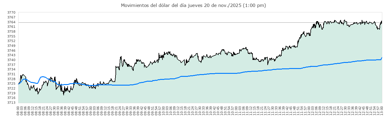 En el mercado SPOT, el dólar finalizó la jornada del jueves, evidenciando una sólida tendencia alcista desde el inicio de la jornada, con un precio promedio de $3,741.47, por encima de la Tasa Representativa del Mercado (TRM), superándola en $24.74 pesos, dicha TRM fijada en $3,716.73 para la sesión.