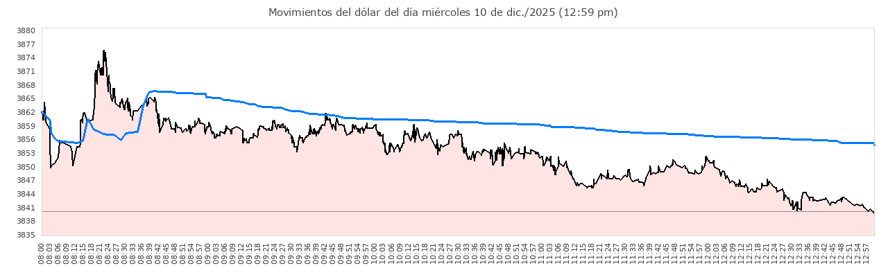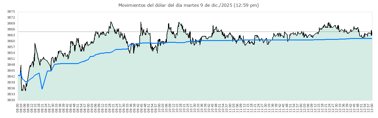 El cierre del mercado SPOT del día martes, evidenció un incremento consistente desde el comienzo de la jornada, con un precio promedio de $3,861.57, terminó experimentando un incremento significativo, superando la Tasa Representativa del Mercado (TRM) por un margen de $31.55 pesos, la TRM referida fijada en $3,830.02 para el día.